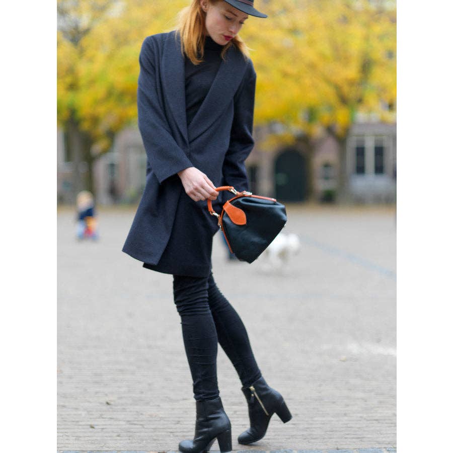 Dit innovatieve model uit de Vesper collectie is er een die niet vaak wordt gezien. Het model heeft een speciale vorm, het ziet eruit als een driehoek met afgeronde hoeken. Het korte handvat heeft een fijne grip. De tas kan ook op een andere manier worden gedragen door de extra schouderriem. Deze schouderriem is afneembaar en verstelbaar. Loop met extra vertrouwen een afspraak binnen met deze leren handtas.