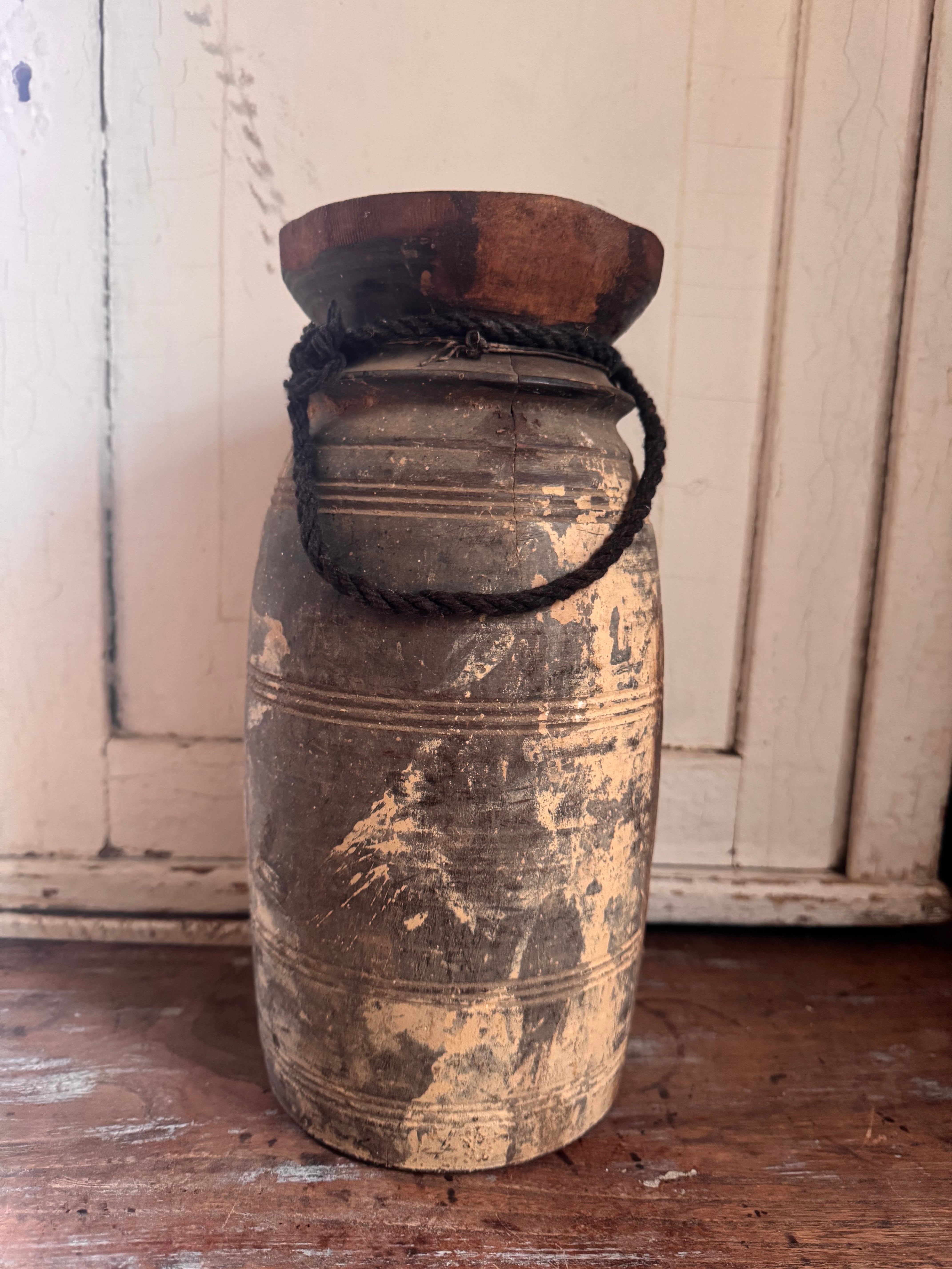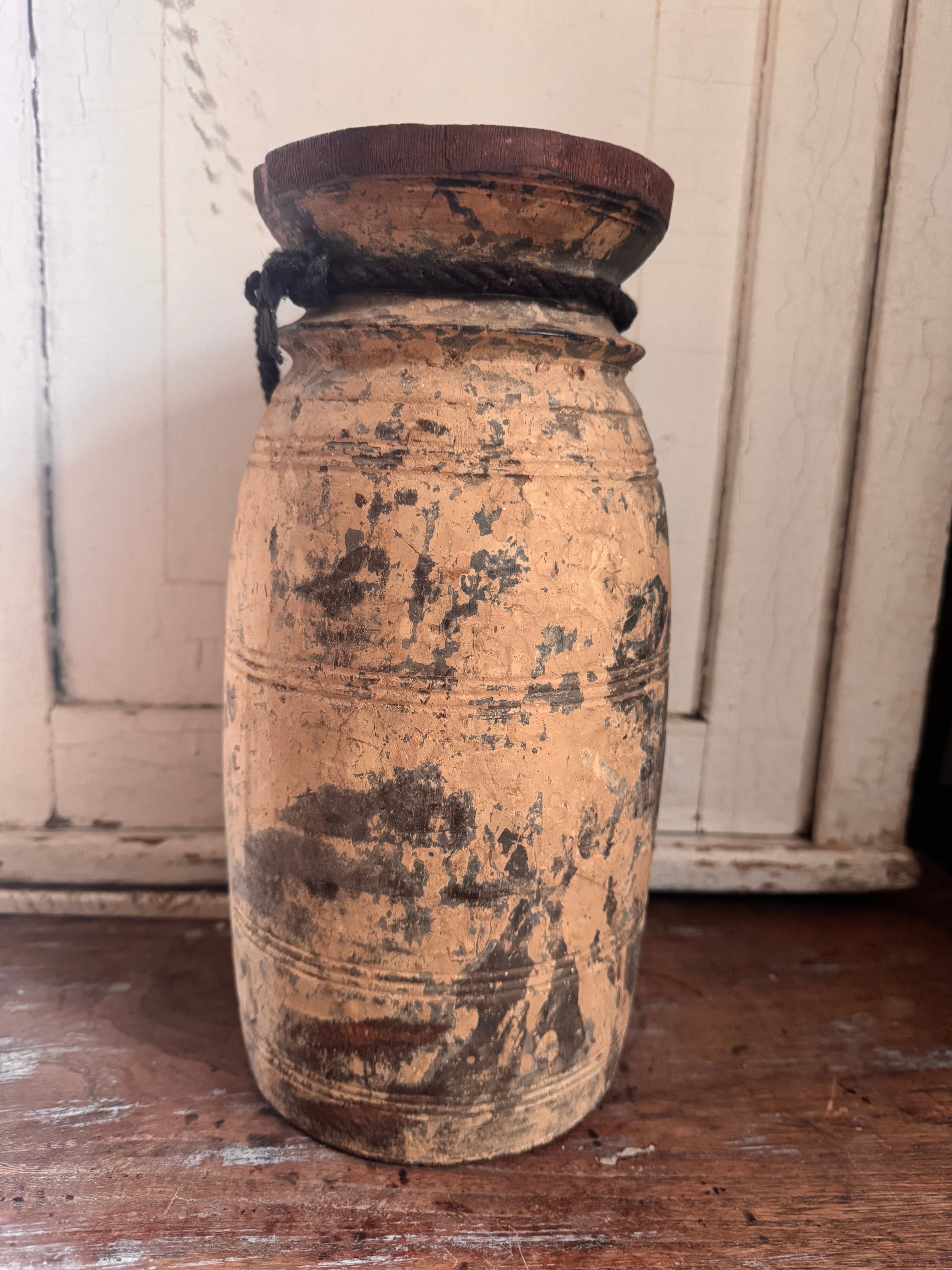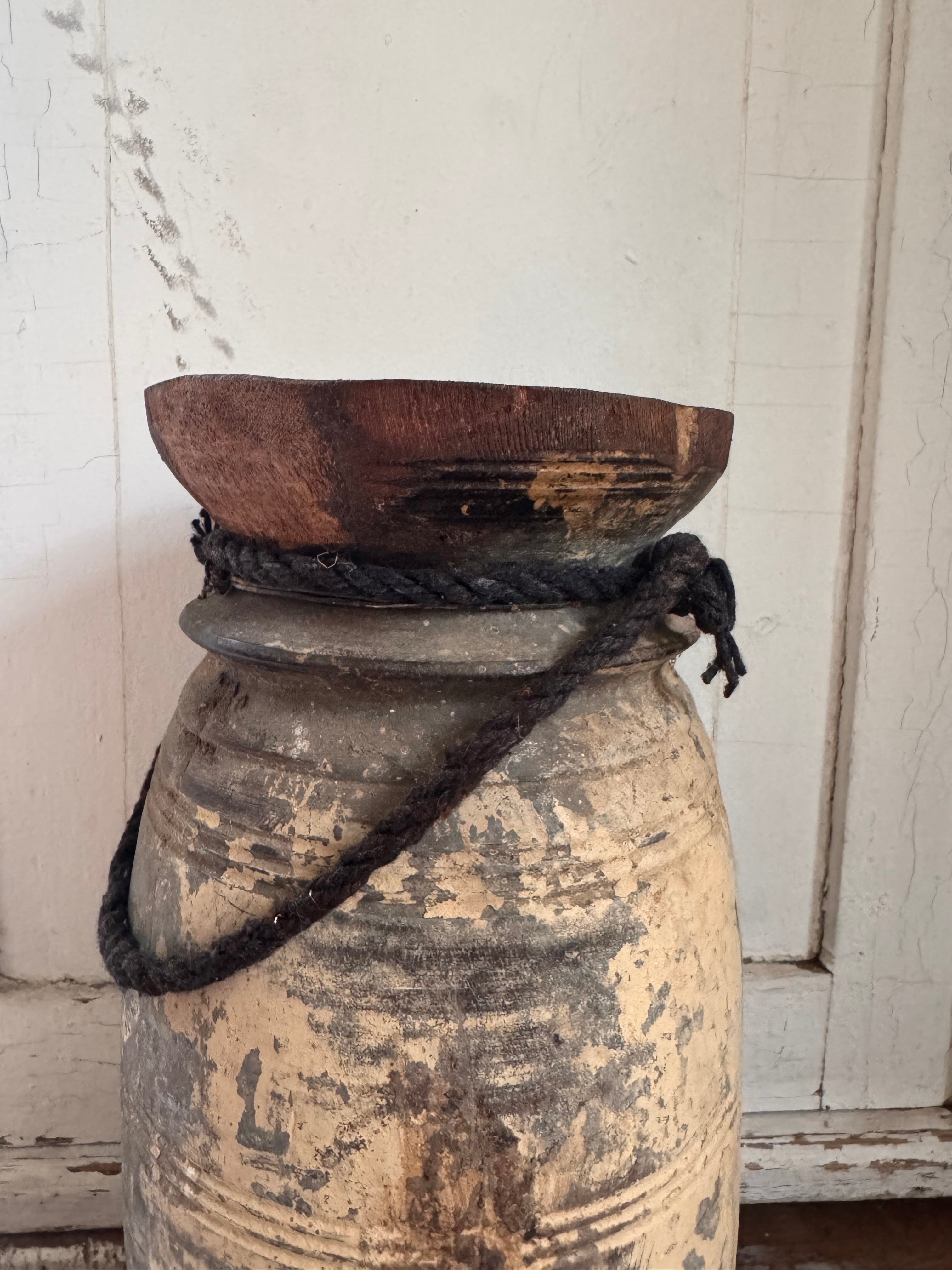 Gebruik deze vaas als solitair accentstuk of combineer hem met andere decoratieve items voor een bohemian geïnspireerde look. Of je nu bloemen, takken of decoratieve grassen toevoegt, deze oude vintage Indiase rieten vaas zal zeker een statement maken in je huis.