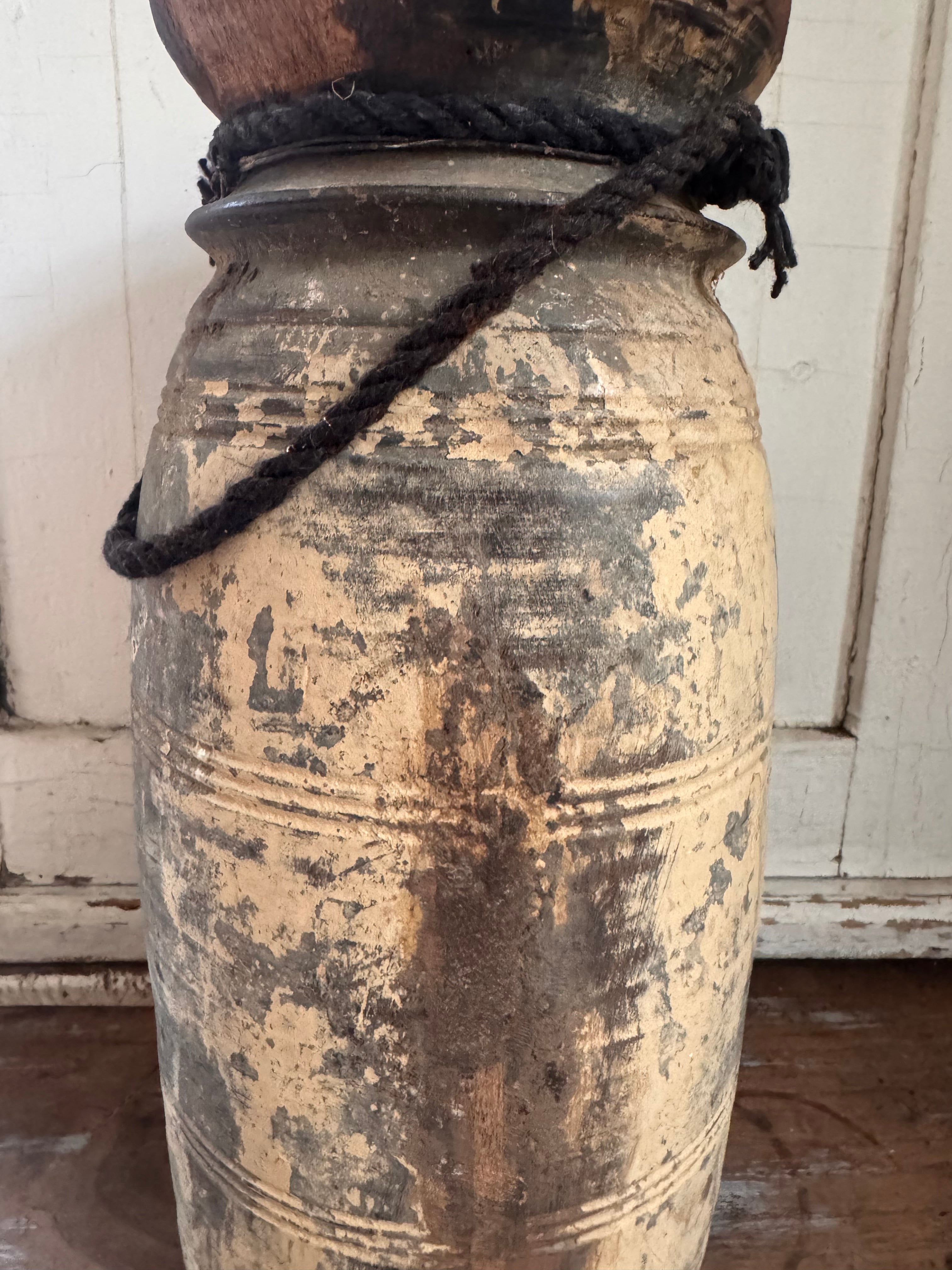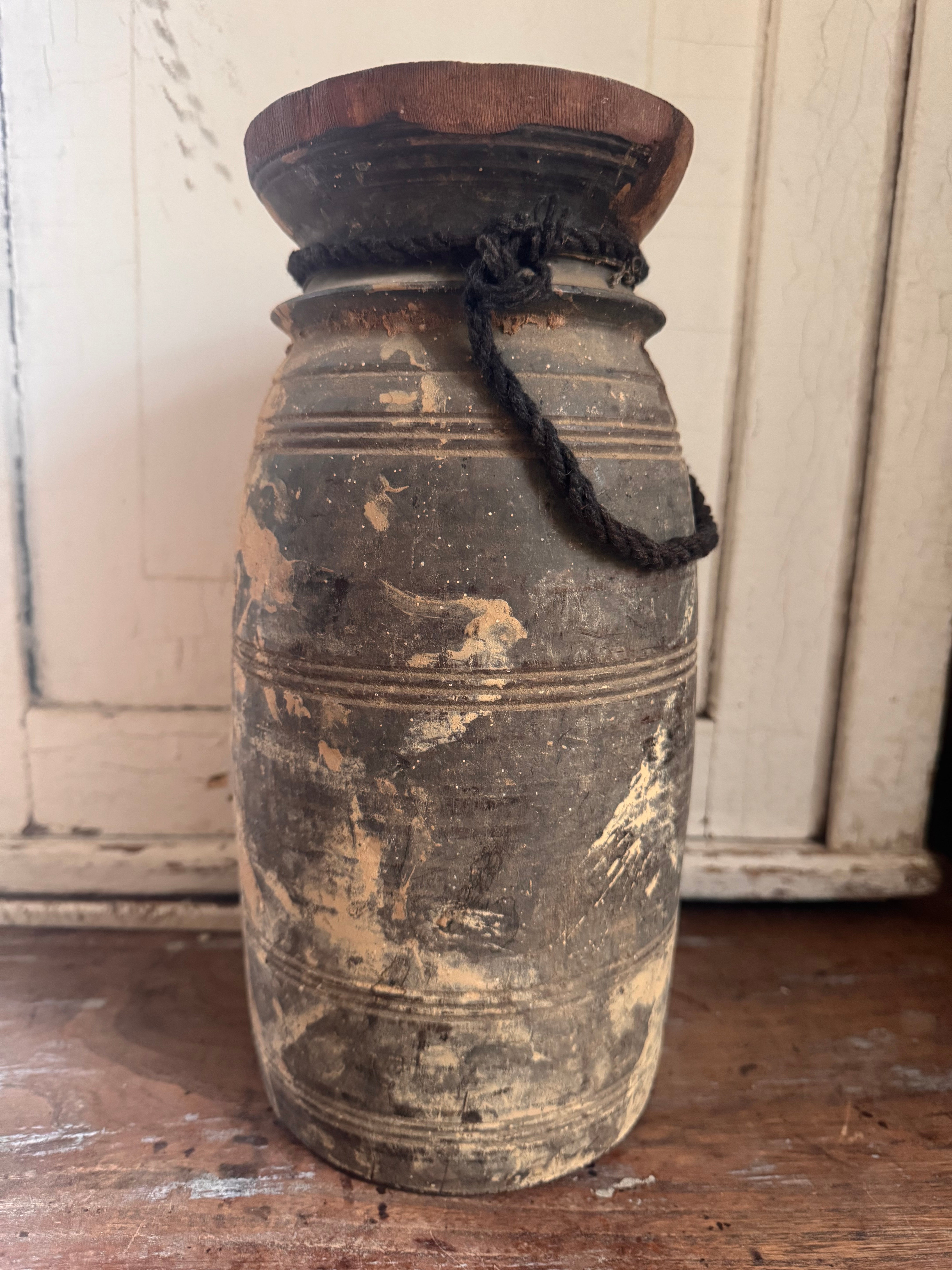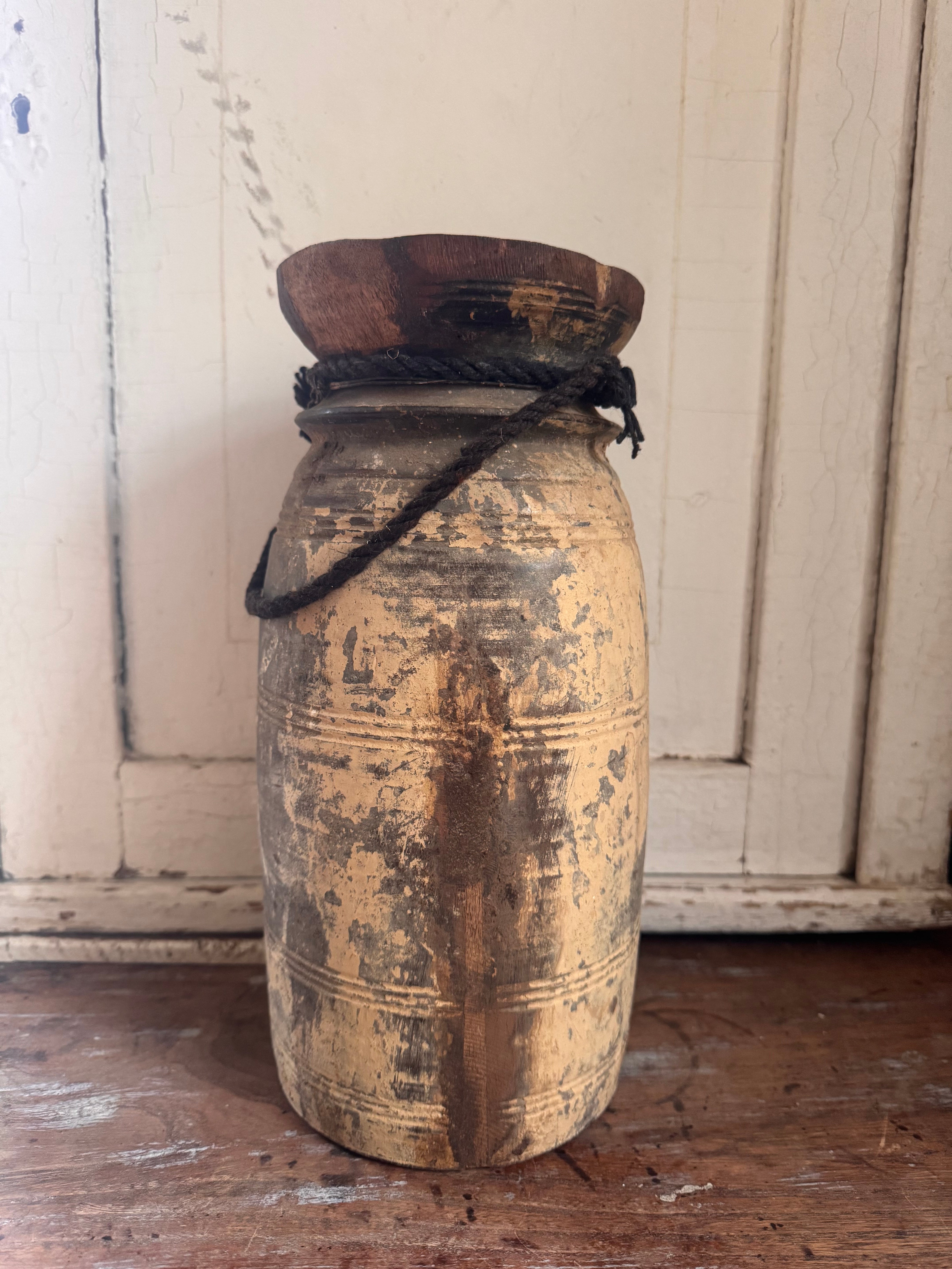 Gebruik deze vaas als solitair accentstuk of combineer hem met andere decoratieve items voor een bohemian geïnspireerde look. Of je nu bloemen, takken of decoratieve grassen toevoegt, deze oude vintage Indiase rieten vaas zal zeker een statement maken in je huis.